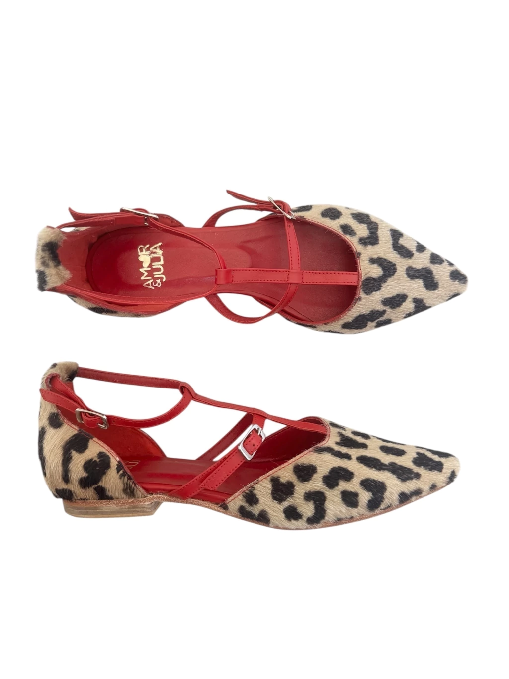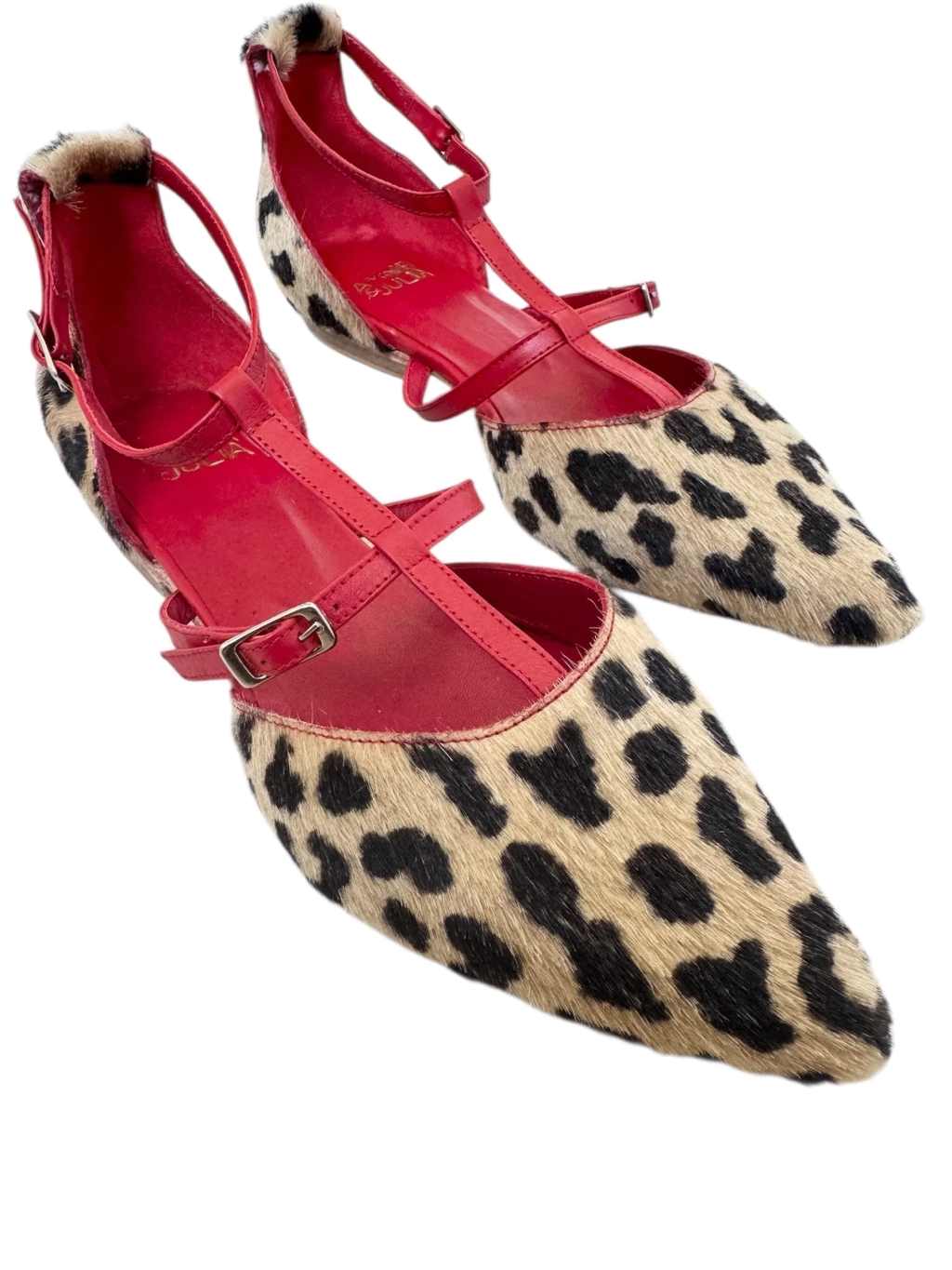 Pelo print con cuero rojo